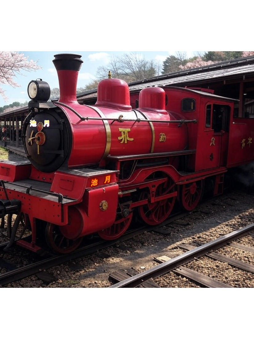 - 架空の想像: 「ボイラー側面に金色の『池月』が輝き、赤い車体が奈良の田園風景に映える。これは歴史的事実ではなく、イメージを膨らませるための創作です。」